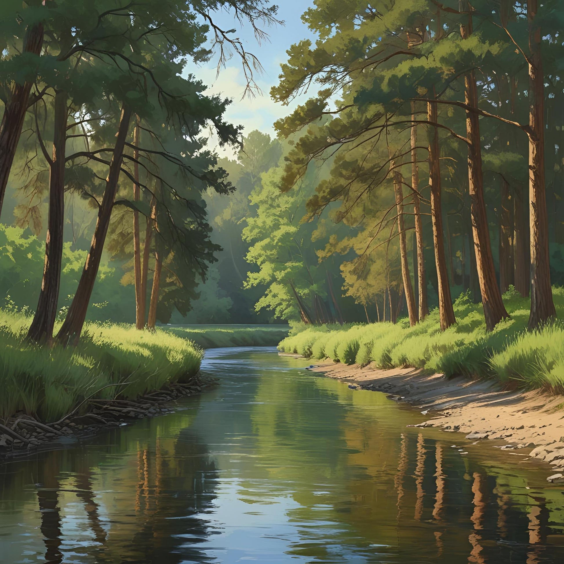 Flowing quietly beneath leaning cedars, Cedarbank Drift highlights the graceful blend of trees and water. The current is steady, the forest quiet, the moment still.