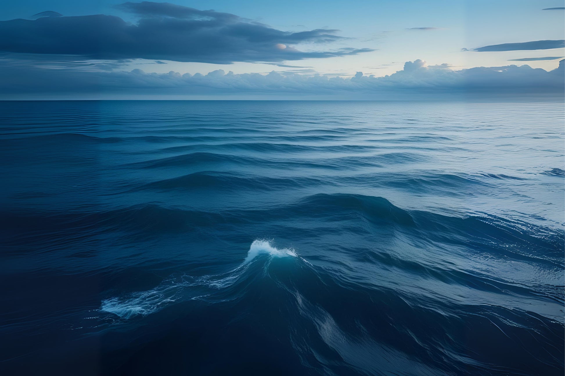 Deep Current Still captures the quiet power of the open sea — a moment suspended between motion and silence, where deep blue waters stretch endlessly under a soft horizon.