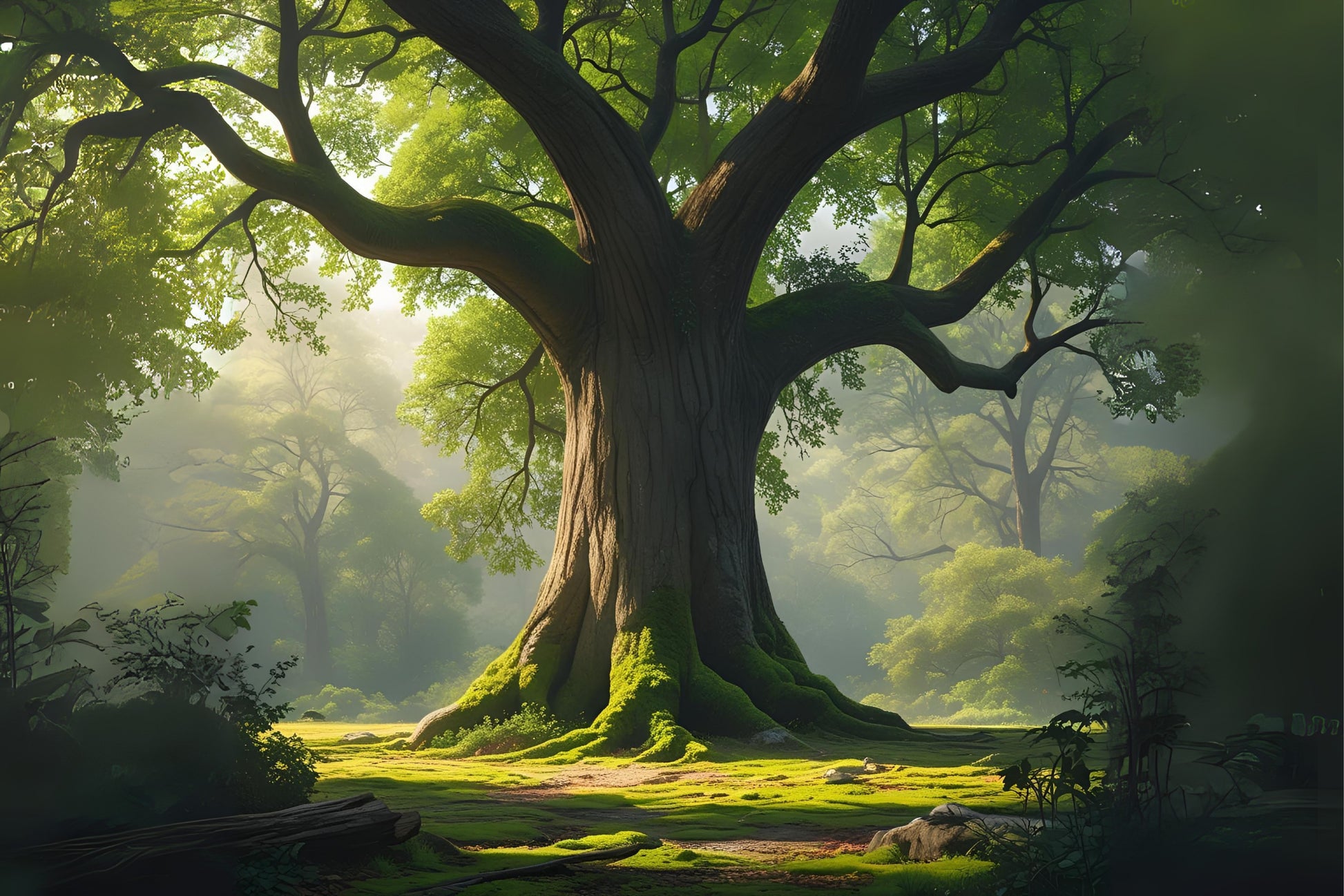 Beneath a broad tree, shadows deepen and thoughts settle. Deeproot Tranquil captures the sheltering quiet of resting beneath something strong and ancient.