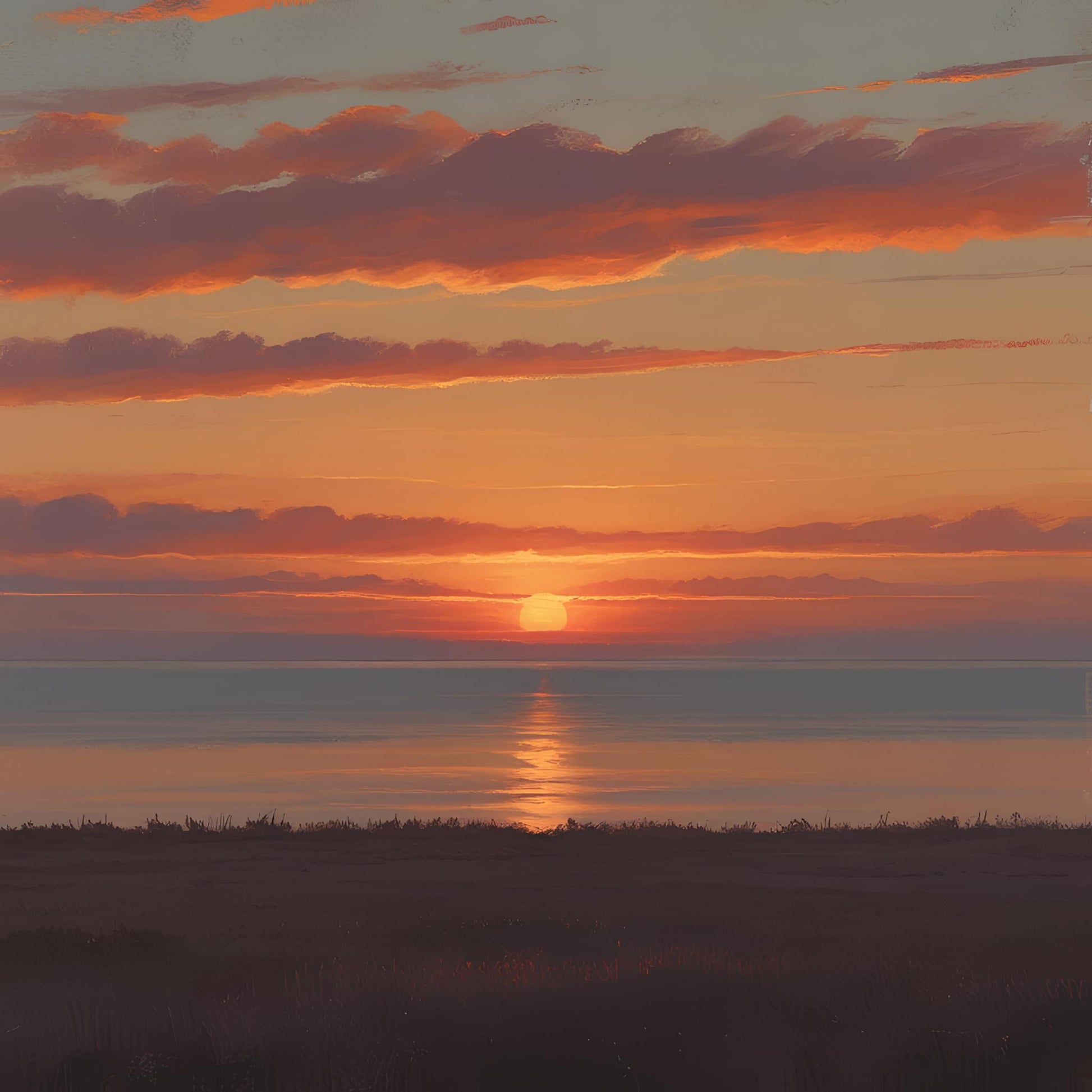 The fire fades gently in Emberrest Sky, where bold sunset light settles into the horizon, casting a warm, glowing calm across a sleeping sky.