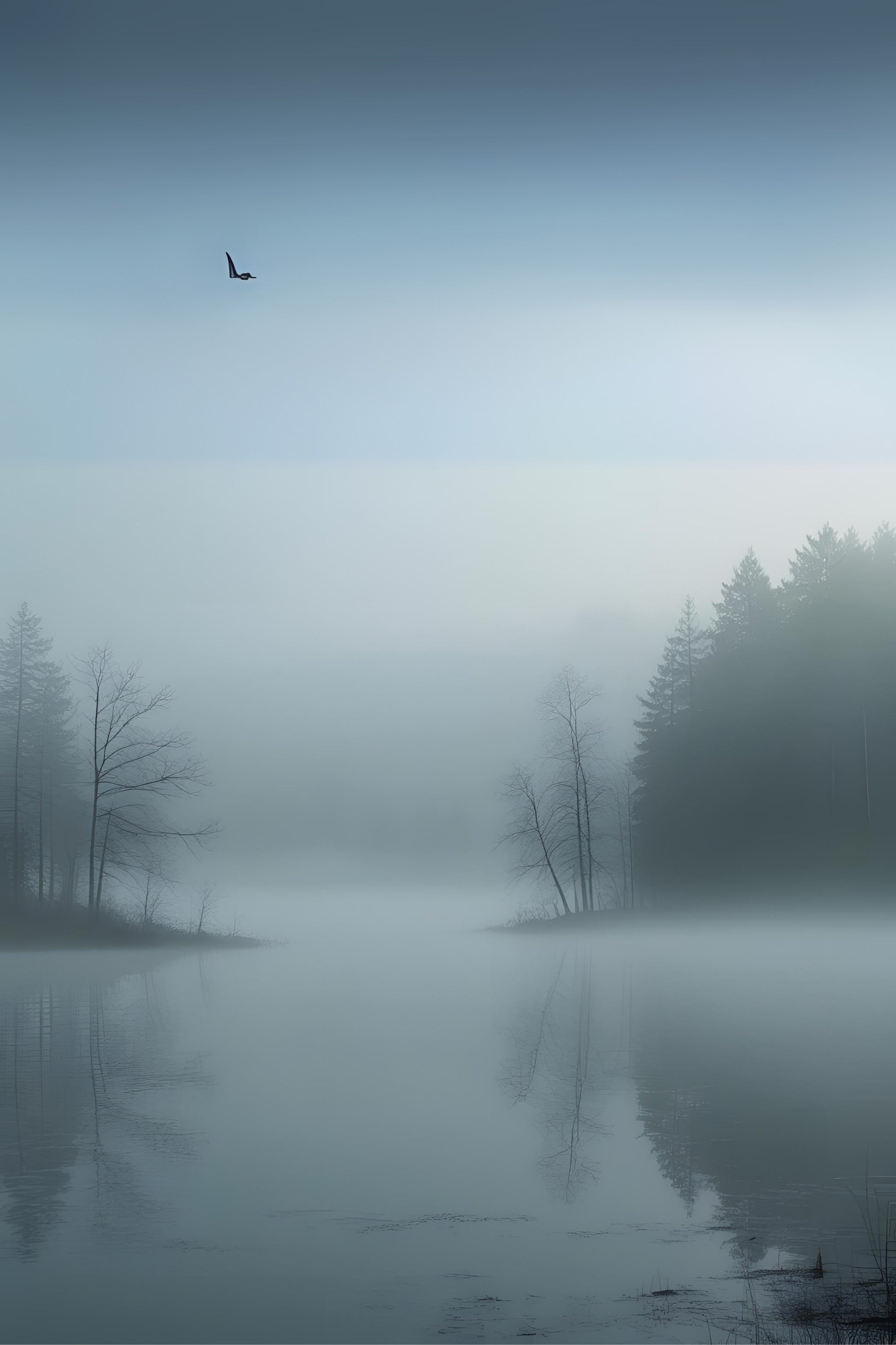 Wrapped in early morning mist, Haze Over Hollow captures a hidden lake where air and water blend in gentle gradients. A visual breath of cool, undisturbed peace.
