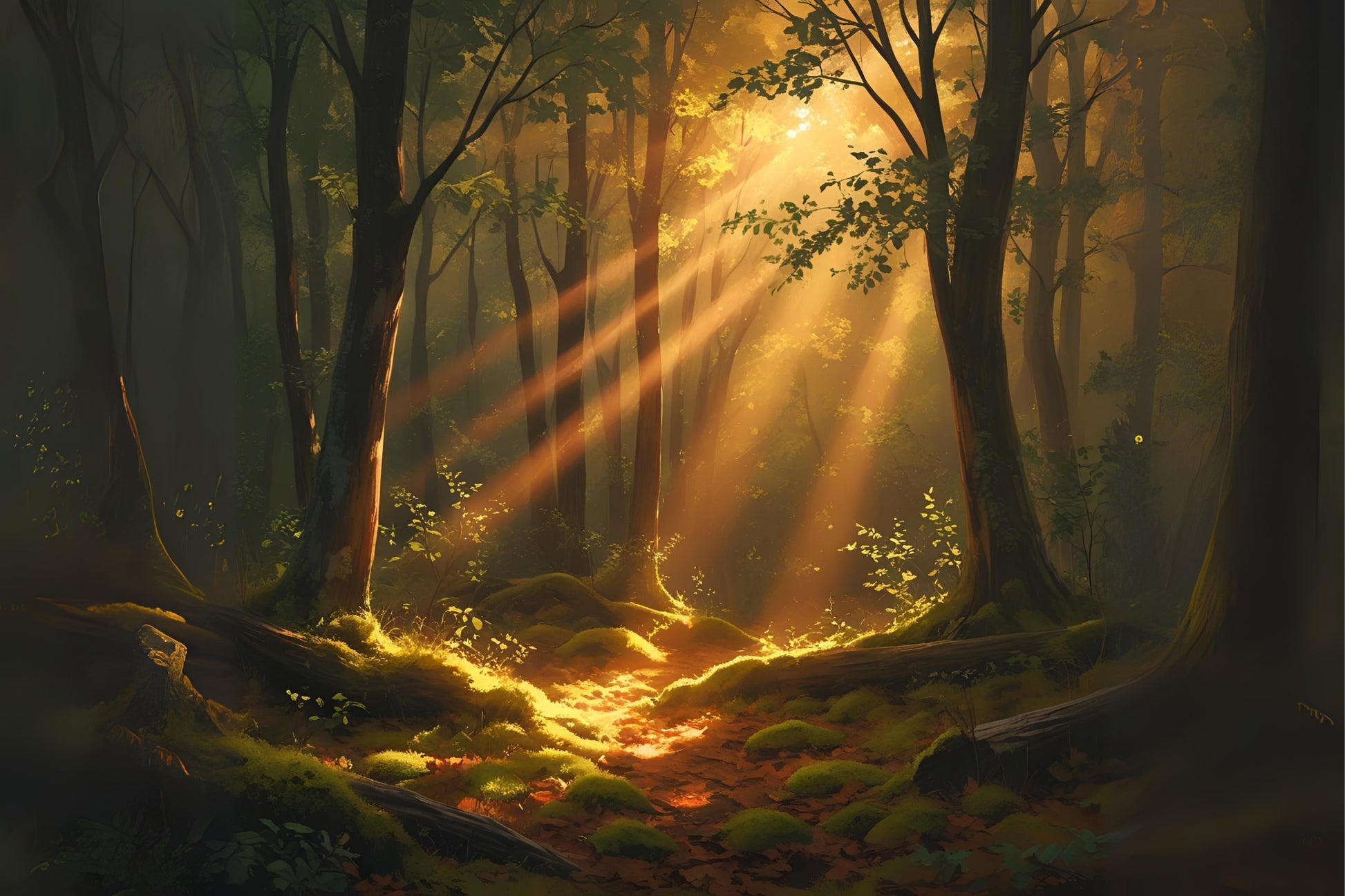 Tucked between old trees lies Hidden Grove Light — where sunlight meets solitude. A visual retreat into golden stillness and soft ground cover.
