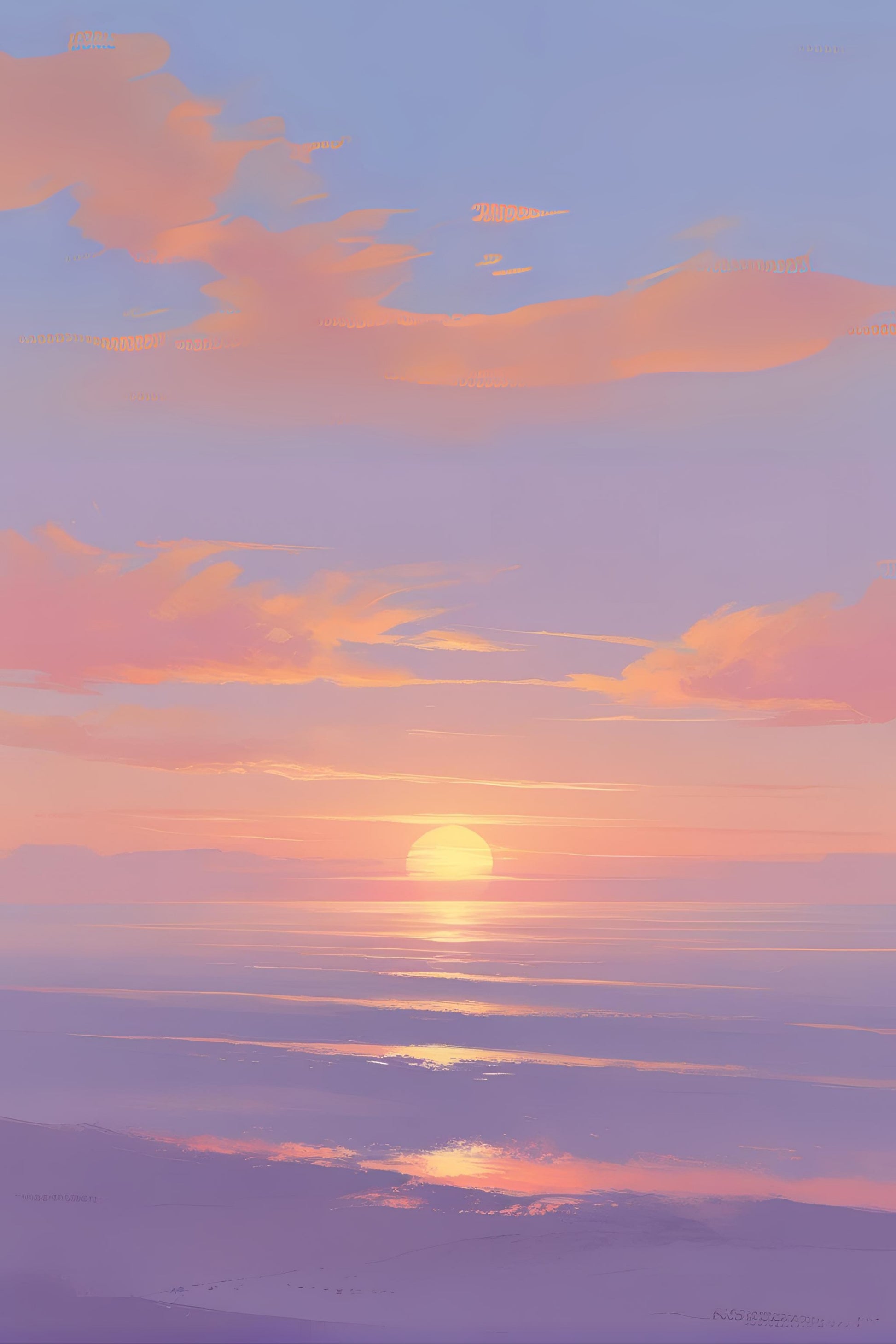 In Mirage Glow, a hazy horizon creates the illusion of motion and mist. Peach and lavender light dance just above the land, shimmering like heat.