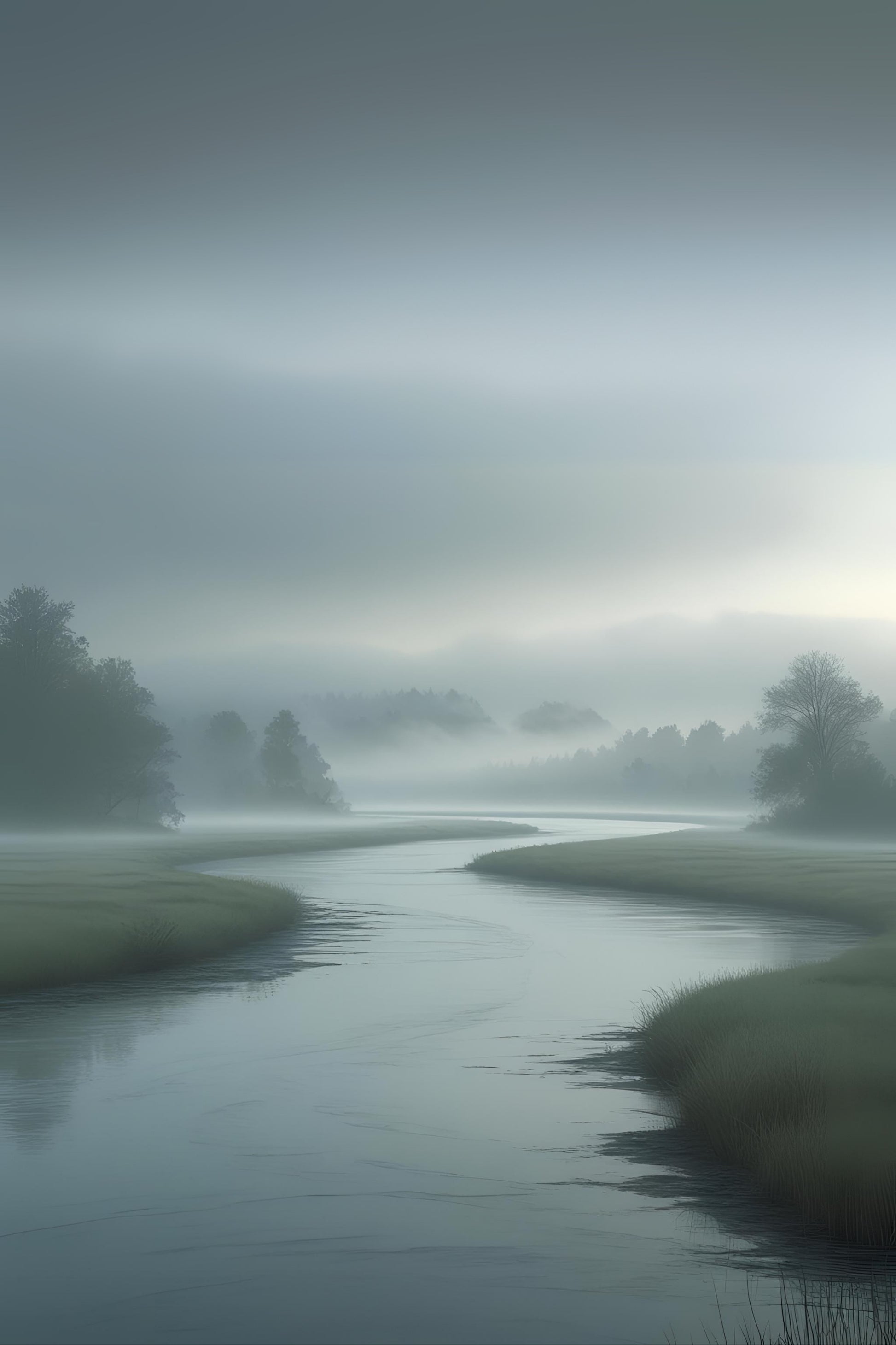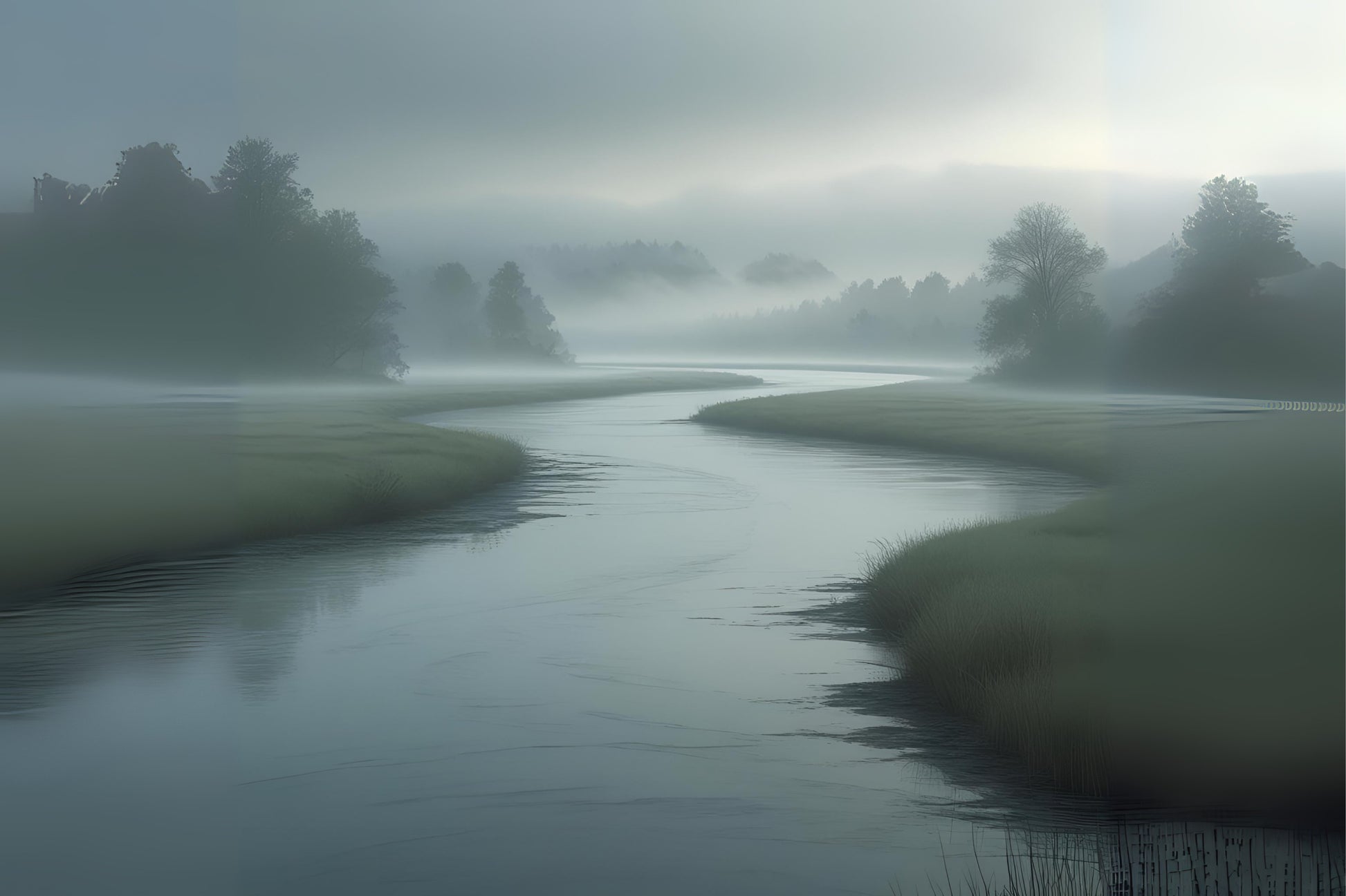 As fog rolls low over a curving river, Mistbend Crossing captures the hush of early morning. The air is cool, the flow is steady, and everything feels untouched.