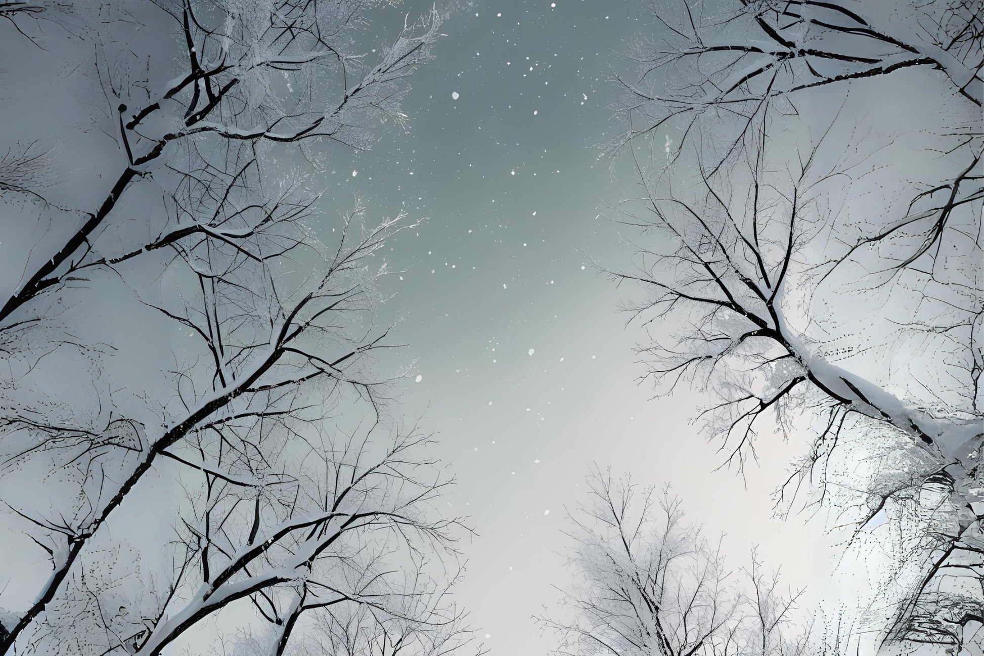 In Palebranch Sky, fine snow dusts the upper branches of a tall tree, reaching into a silver sky. Light, air, and form converge in graceful balance.