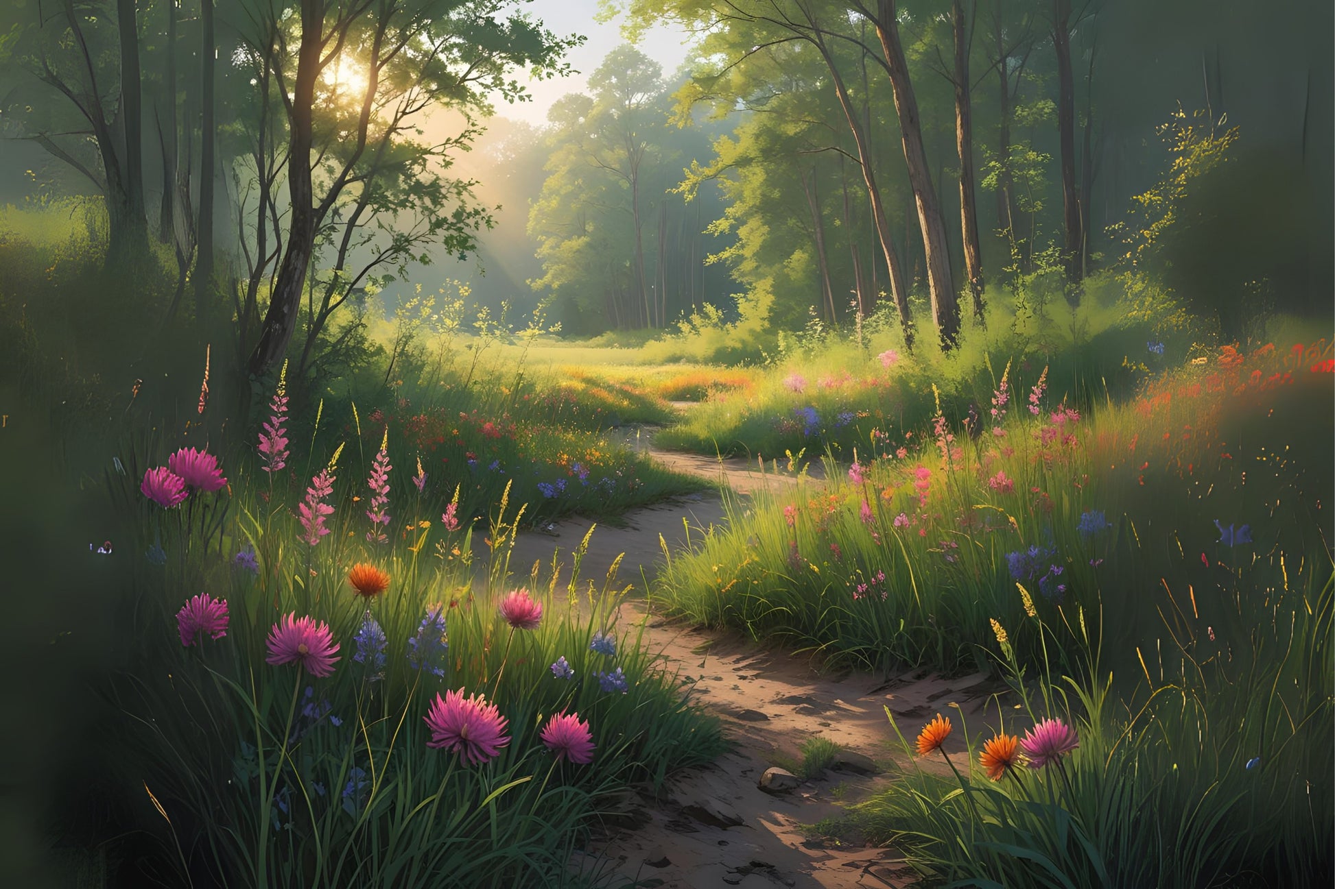 At the edge of the woods, Petalrun Fringe comes alive with flowers bursting through the underbrush — defiant, colorful, and untamed.