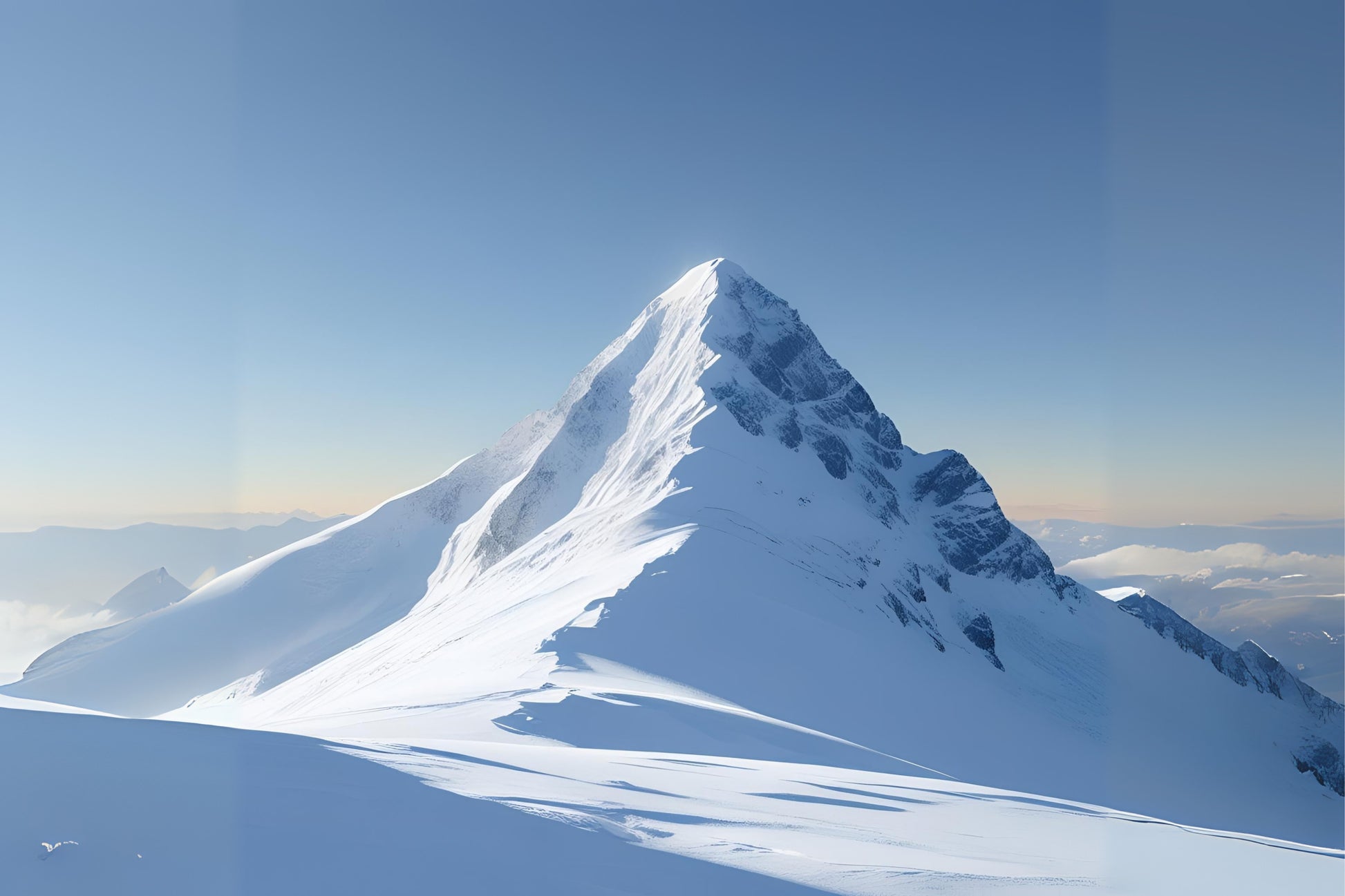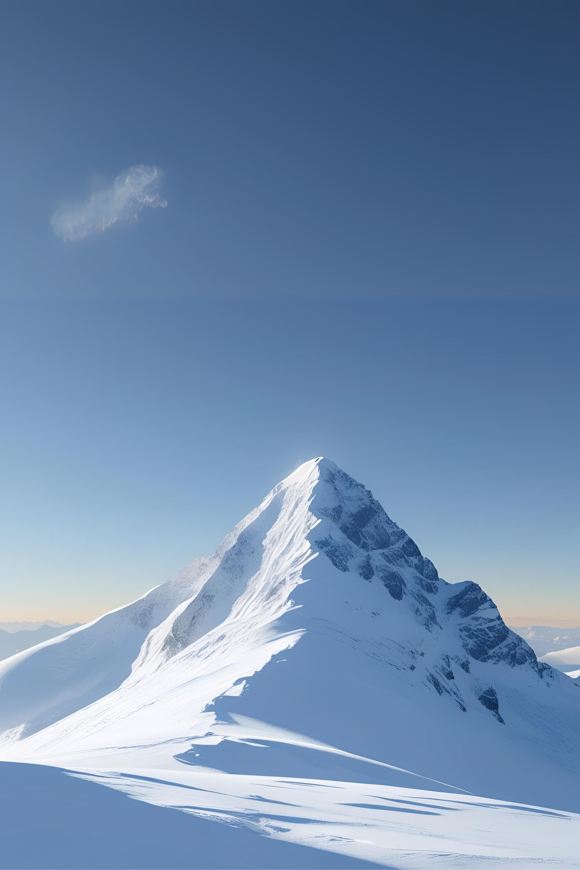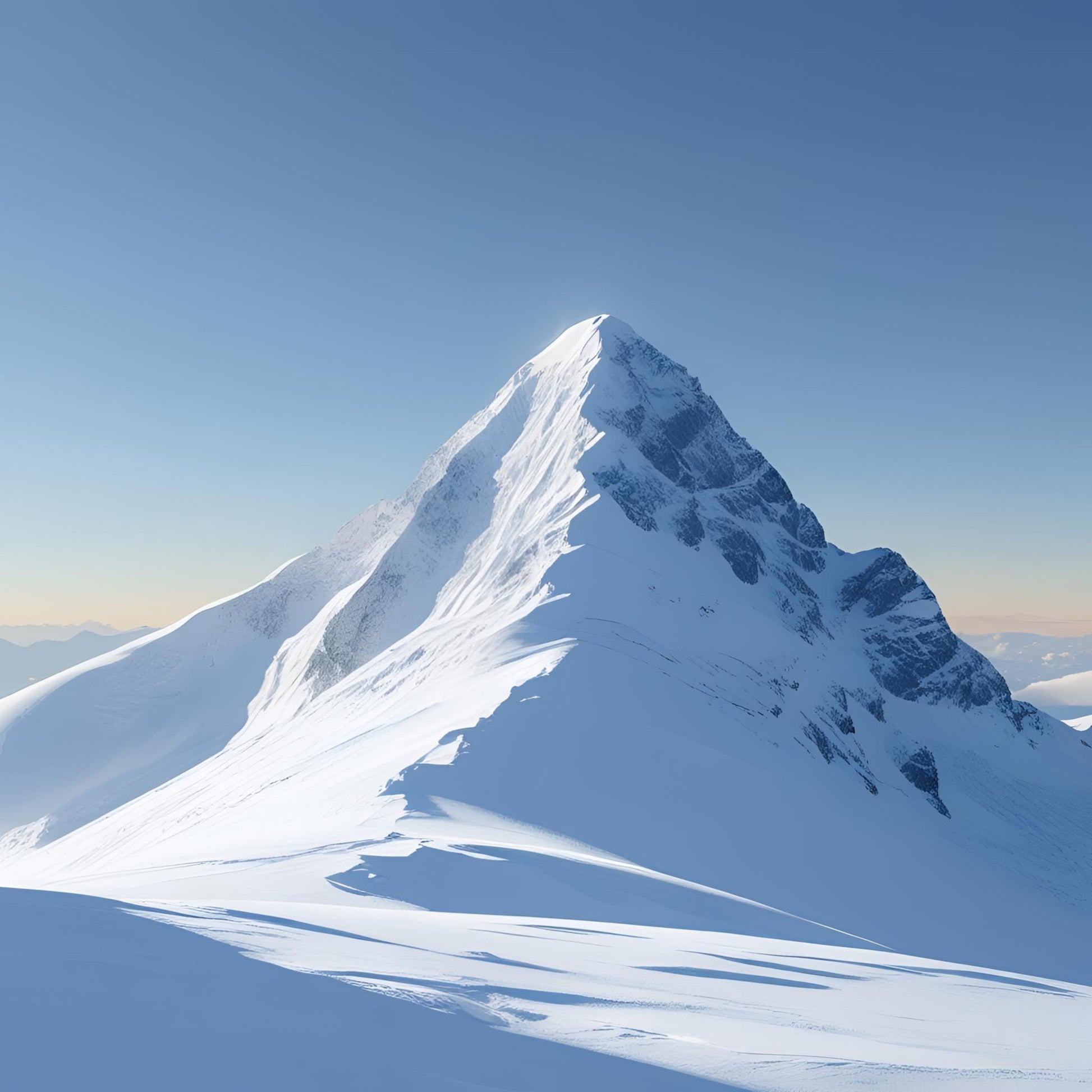 A single snowy crest emerges in Quiet Crestline, lit gently from the side and surrounded by vast sky. Stark and clean, this piece honors the strength of simplicity.