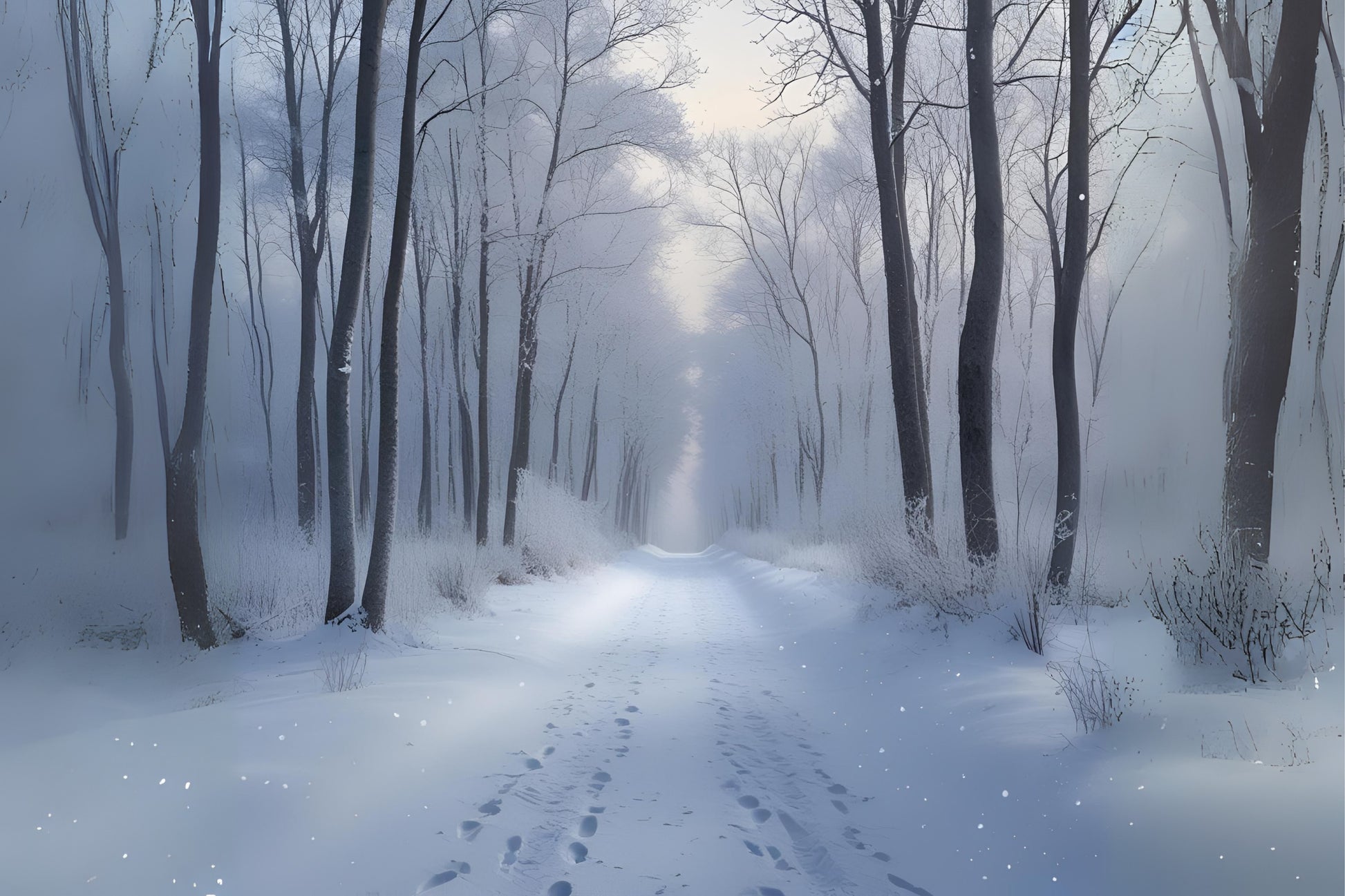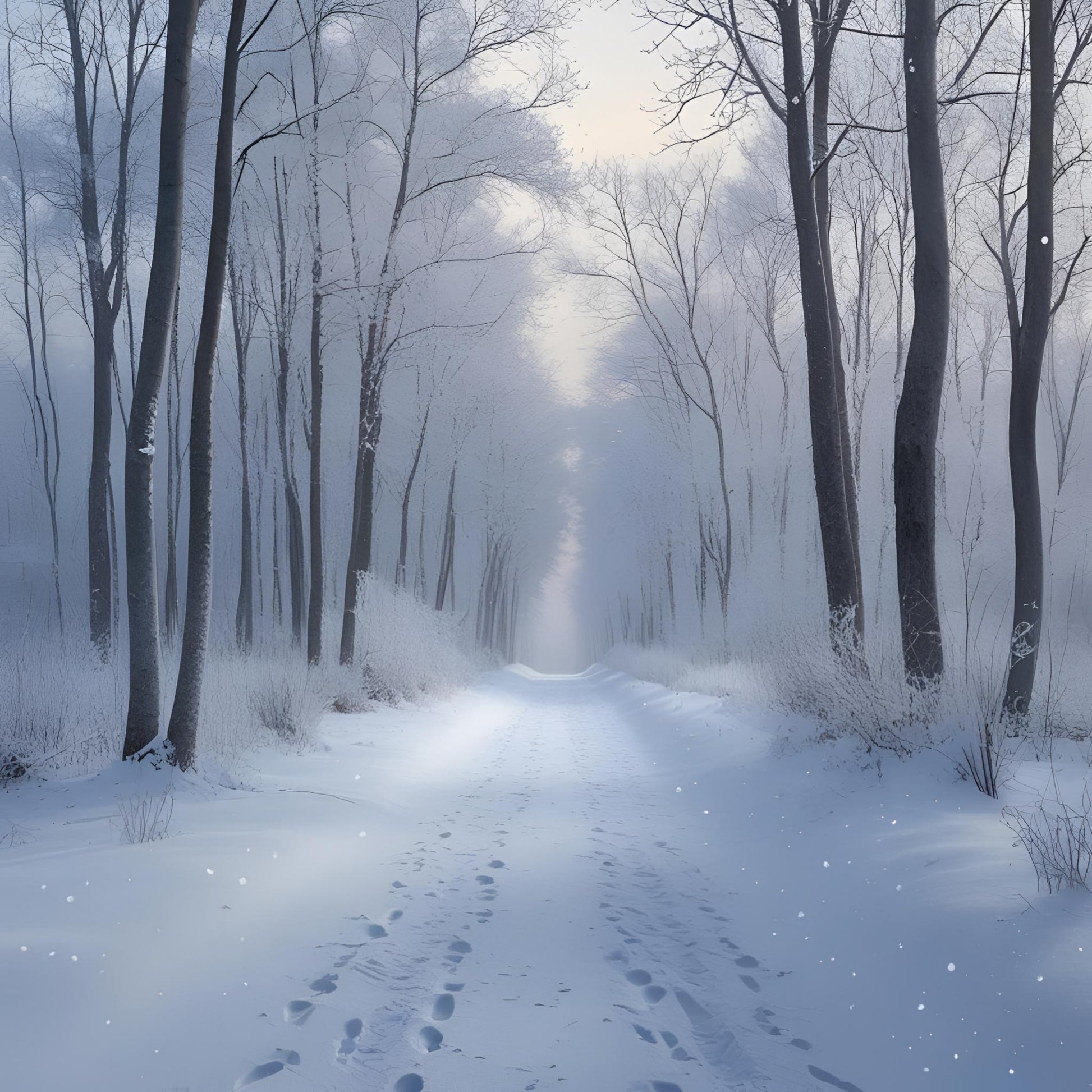 Whisperbank Lane traces a narrow snowy path through quiet woods, where footsteps disappear as soon as they fall. Stillness and snowfall move in rhythm here.